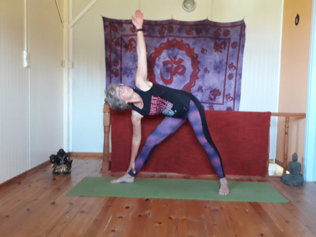 Yoga op het strand recht voor ons. Het is echt heerlijk! Marjan begeleid de yoga in alle talen. Aanrader als je op Samos bent!